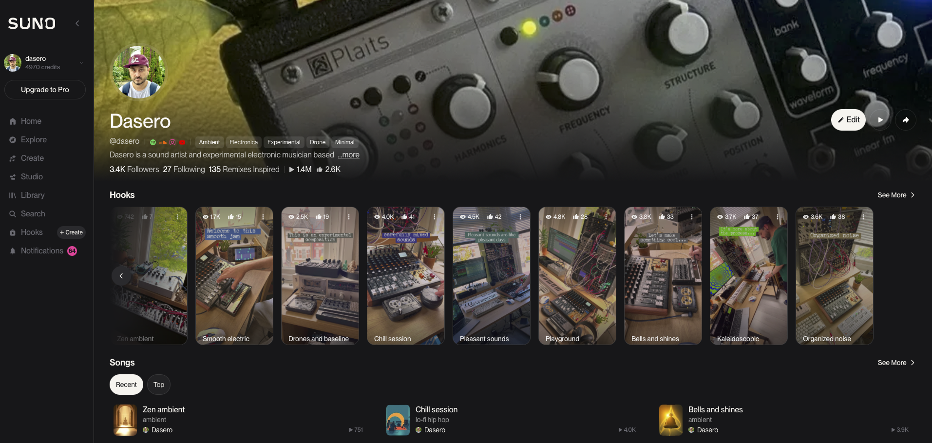 I've had the privilege to be a member of the Creator Champions team at Suno, the innovative AI music company that it's revolutionising the musical industry with their signature AI model. Being a creator for this platform included creating short-form video, or "Hooks" for their website, as well as other forms of content and digital marketing, and testing new features with their personalised web-based software.